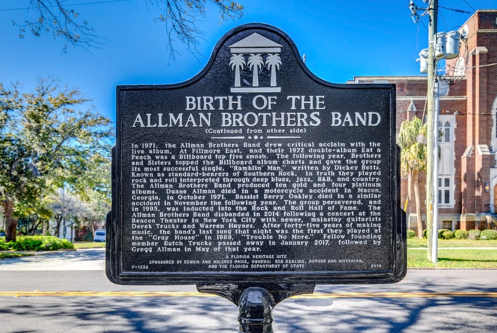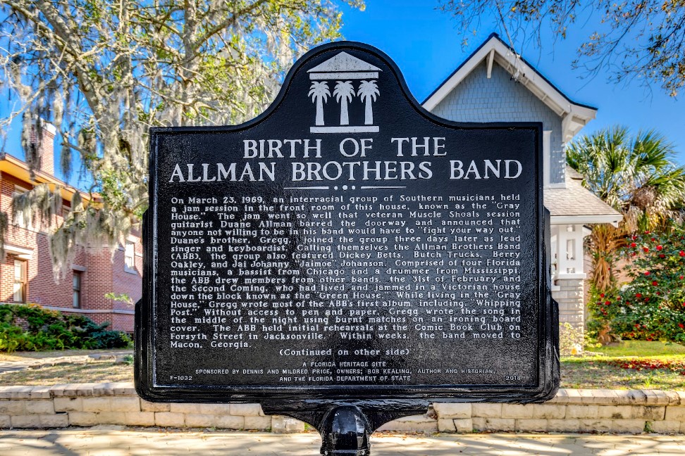 Whenever in the Riverside area, one thing you’ll definitely want to check out is the Allman Brothers House, otherwise known as “The Gray House”. Built in 1915 a few blocks away from the St Johns River, the 4,022-square ft home features 6 bedrooms, and 3 bathrooms. The residence boasts a historical marker giving more information about the home, and the band’s history there. Though today the home is a privately owned residence, in 1969 this house is where the legendary classic rock group, The Allman Brothers Band found its beginnings.